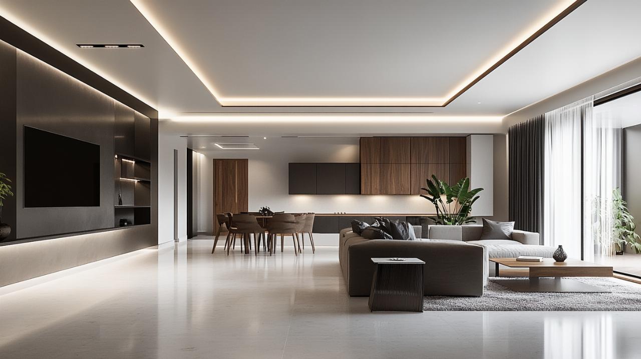 Les plafonds à lames, qu'elles soient métalliques ou en bois, apportent un caractère distinctif aux espaces contemporains. Ces systèmes linéaires créent un effet de profondeur et de dynamisme particulièrement recherché dans les halls d'accueil et les zones de passage. Les lames peuvent être posées parallèlement ou perpendiculairement, jouant sur les perspectives et la perception de l'espace. Leur installation nécessite une ossature spécifique qui garantit l'alignement parfait des éléments. Les systèmes de lames intègrent souvent des fonctionnalités acoustiques grâce à des perforations ou des matériaux absorbants, combinant ainsi performance technique et esthétique raffinée.